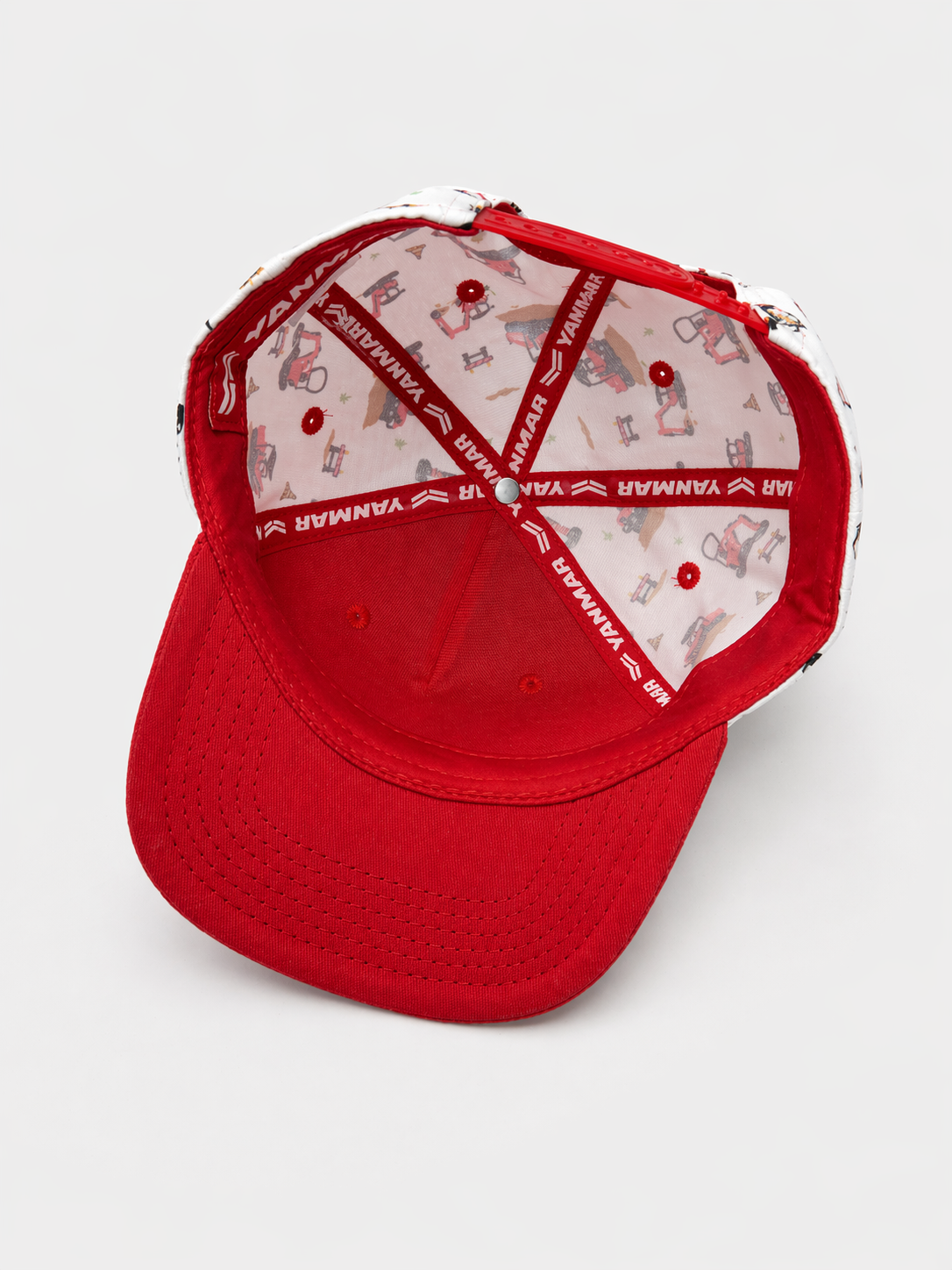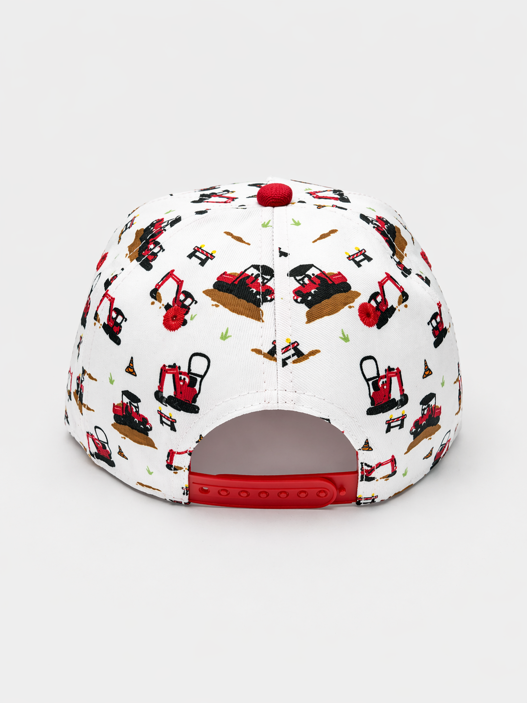 Casquette enfant rouge et blanche avec motifs pelleteuse